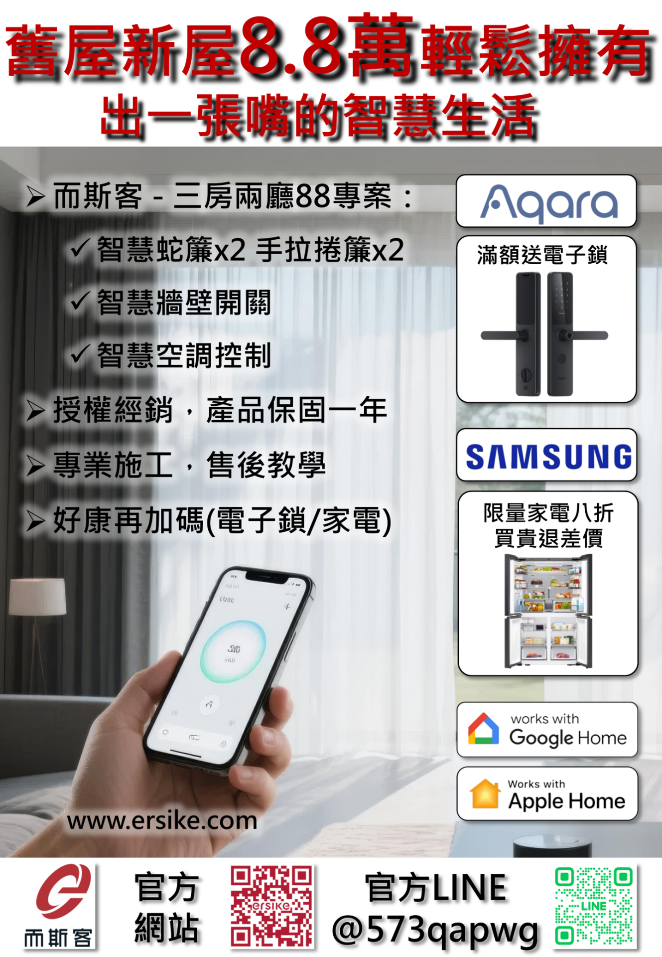 行銷 Sep 25, 2025 而斯客Aqara智慧家居88專案活動開跑 (好康加碼) Aqara智慧家居88專案開跑囉,讓您輕鬆擁有工業級的居家生活,優惠數量有限敬請把握,快來加入「出一張嘴」的行列,實現在家我最大的夢想。 SHARE 相關文章 Related Articles 行銷 Dec 08, 2025 arrow_forward 行銷 【而斯客 x Aqara】拒絕半調子!打造真正「好用」的工業級智慧家庭 Dec 08, 2025 行銷 Nov 01, 2025 arrow_forward 行銷 堅實底蘊,溫柔守護:而斯客為您打造「懂人心」的三星智慧宅 Nov 01, 2025 行銷 Aug 19, 2025 arrow_forward 行銷 你的預算值得更好的電源供應器,而WAGO x而斯客做到了 Aug 19, 2025