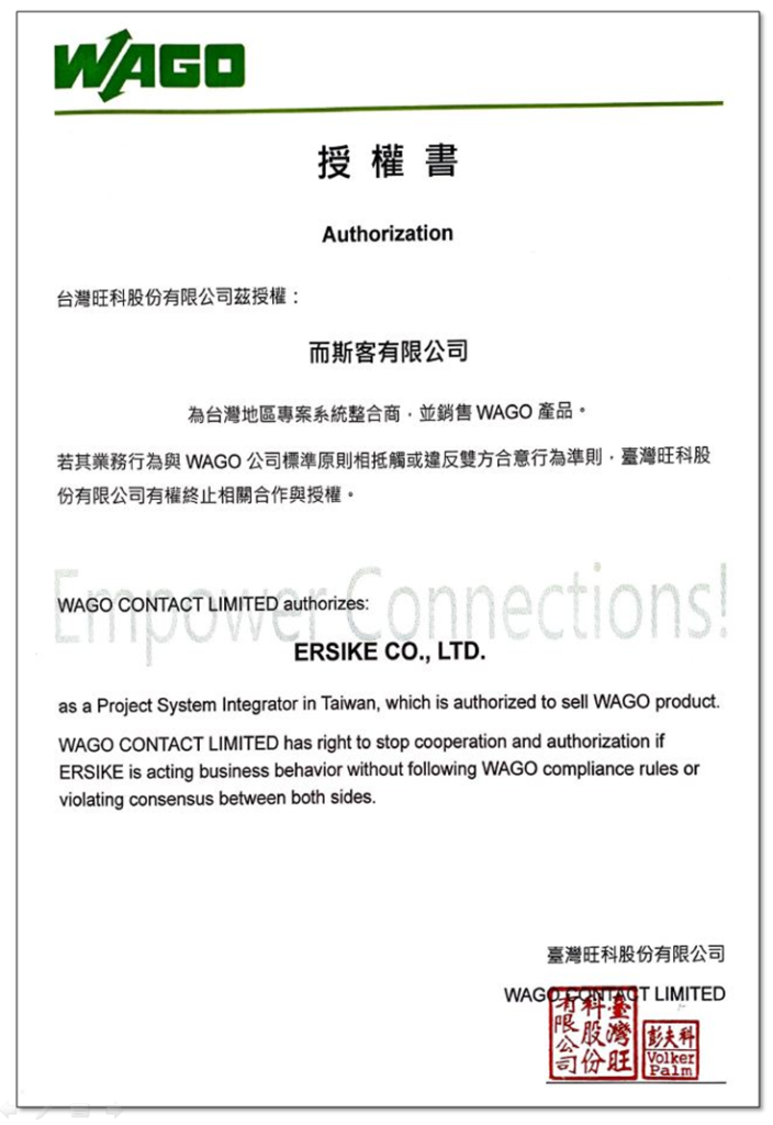 公告 Oct 25, 2023 2023年而斯客取得德國WAGO(臺灣旺科)授權,為台灣地區專案系統整合商。 2023年而斯客取得德國WAGO(臺灣旺科)授權,為台灣地區專案系統整合商,並銷售WAGO產品。 SHARE 相關文章 Related Articles 公告 Jul 13, 2020 arrow_forward 公告 而斯客有限公司成立 Jul 13, 2020
